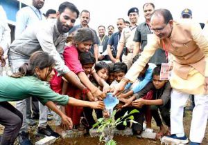 मुख्यमंत्री चौहान ने बीना रिफाइनरी हेलीपेड पर बादाम का पौधा रोपा