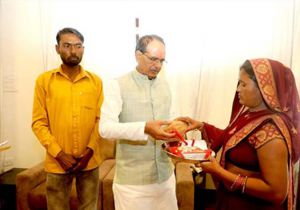 छतरपुर से पैदल भोपाल पहुँचे दंपत्ति का मुख्यमंत्री चौहान ने किया सम्मान