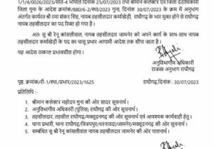 31 Jul, 2023 09:18 PM IST | ASIAVARTANEWS.COMभोपाल गुना जिले के राघोगढ़ राजस्व अनुविभाग में पदस्थ एसडीएम और राजस्व अनुविभागीय अधिकारी ने एक...