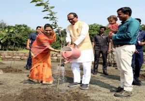 मुख्यमंत्री चौहान ने पीपल, करंज और गुलमोहर के पौधे रोपे
