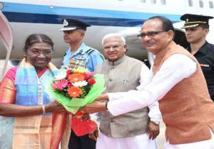 राष्ट्रपति श्रीमती द्रोपदी मुर्मु का ग्वालियर विमानतल पर आत्मीय स्वागत