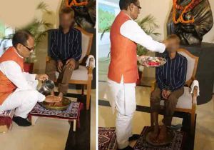 पेशाब कांड पीड़ित आदिवासी के CM ने पांव धोये तिलक और शॉल से सम्मान किया, माफी मांगी