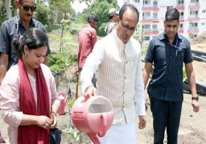 मुख्यमंत्री चौहान ने नीम, जामुन और करंज के पौधे रोपे