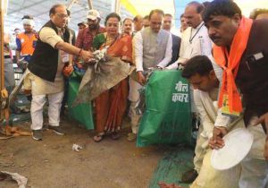 मुख्यमंत्री चौहान ने सम्मेलन स्थल पर सफाई कर दिया स्वच्छता का संदेश