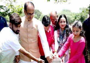 मुख्यमंत्री चौहान ने बादाम, गुलमोहर और पीपल के पौधे लगाए