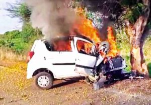 हरदा में भीषण कार हादसा, पति-पत्नी समेत जिंदा जले 4 लोग