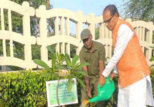 मुख्यमंत्री चौहान ने नई दिल्ली में नवीन म.प्र. भवन परिसर में रोपा चंपा का पौधा