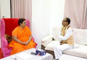 मुख्यमंत्री चौहान ने सांसद साध्वी प्रज्ञा सिंह ठाकुर से सौजन्य भेंट की