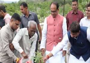 मुख्यमंत्री चौहान ने पीपल, आम और चंपा के पौधे लगाए