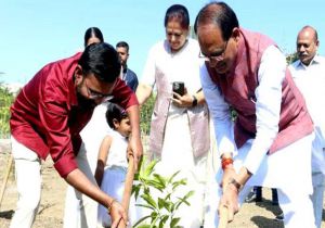 मुख्यमंत्री चौहान ने बरगद, आम और जामुन के पौधे लगाए