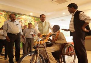 मुख्यमंत्री चौहान ने लाल सिंह को ट्रायसिकल भेंट की