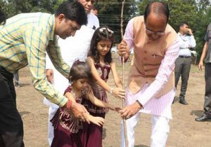 मुख्यमंत्री चौहान ने लगाए पीपल, बादाम और गुलमोहर के पौधे
