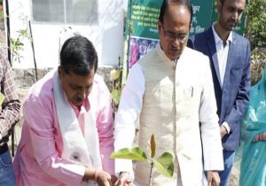 मुख्यमंत्री चौहान ने चंपा, बरगद और सप्तपर्णी के पौधे लगाए