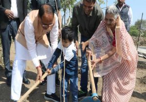 मुख्यमंत्री चौहान के साथ 80 वर्षीय सेवानिवृत्त शिक्षिका ने पौध-रोपण किया