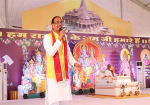 मुख्यमंत्री चौहान ने सांवेर में अयोध्या के संत प्रेम भूषण महाराज से राम-कथा सुनी