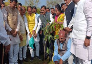 मुख्यमंत्री चौहान ने खजुराहो में जन-प्रतिनिधियों के साथ पौध-रोपण किया
