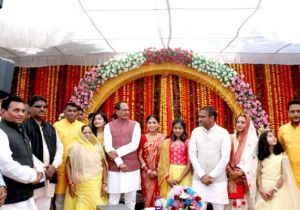 मुख्यमंत्री चौहान खरगोन में विधायक बिरला की सुपुत्री के विवाह समारोह में हुए शामिल