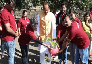 मुख्यमंत्री चौहान ने पर्यावरण प्रेमी संस्था के सदस्यों के साथ लगाए पौधे