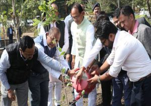 मुख्यमंत्री चौहान ने खिरनी, करंज और हरसिंगार के पौधे लगाए