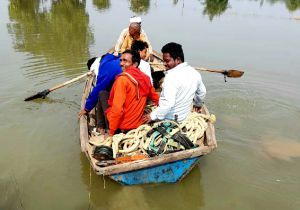 बिजली कार्मिकों ने जलाशय में नाव से जाकर सुधारा विद्युत फॉल्ट