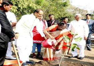 राष्ट्रपति श्रीमती मुर्मु ने स्मार्ट उद्यान में लगाया बरगद का पौधा
