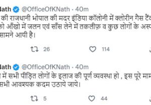 27 Oct, 2022 09:30 AM IST | ASIAVARTANEWS.COMभोपाल मध्य प्रदेश की राजधानी भोपाल की मदर इंडिया कॉलोनी में बुधवार रात क्लोरीन गैस फैलने...