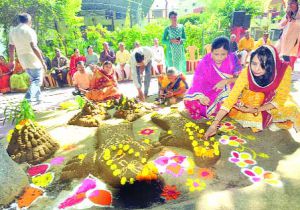 आज शहर में कई स्थानों पर की गोवर्धन पूजा