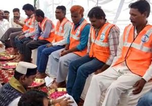 मंत्री, विधायकों ने सफाई कर्मियों के थाली में रखकर धोए पैर, तिलक लगाकर बरसाए फूल