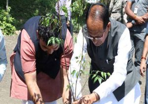 मुख्यमंत्री चौहान ने कवि तथा ओजस्वी वक्ता सुमित ओरछा के साथ किया पौध-रोपण