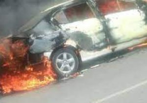 गौतम नगर थाने के पीछे कार में बदमाशों ने लगाई आग