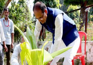 मुख्यमंत्री चौहान ने लगाया नारियल का पौधा