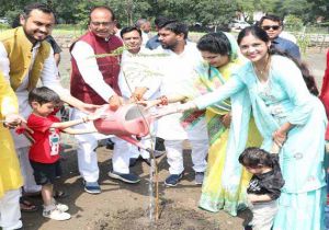 मुख्यमंत्री चौहान ने पीपल, गुलमोहर और सामिया केसिया के पौधे रोपे