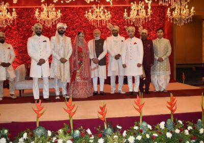 केन्द्रीय खाद्य प्रसंस्करण उद्योग मंत्री पशुपति कुमार पारस के भतीजे की शादी में प्रधानमंत्री नरेंद्र मोदी , वर-वधू को दिया आशीर्वाद