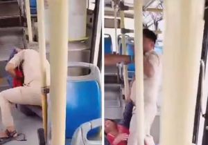 DTC बस खाकी वर्दी पहने शख्स ने महिला के साथ की मारपीट