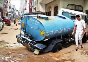 दिल्ली जल बोर्ड ने जो सड़क खोदी वहीं फंस रहे उसी के टैंकर