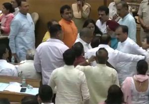 MCD सदन में बाढ़ को लेकर जोरदार हंगामा, AAP और BJP पार्षदों के बीच धक्का-मुक्की