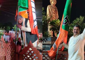 कार्यकर्ताओं के साथ रात में खुद तोमर, हितानंद ने लगाए झंडे