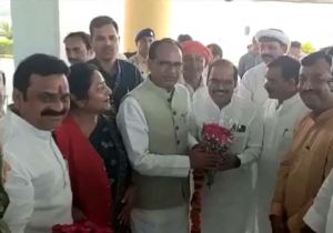 सीएम शिवराज व भाजपा प्रदेश अध्यक्ष विष्णु दत्त शर्मा पहुंचे खजुराहो....