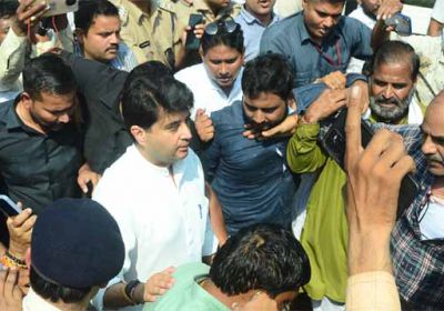 सिंधिया को कच्चे रास्ते से निकलवानी पड़ी अपनी गाड़ी