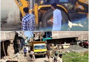 गत दिनों प्रेम प्रसंग के चलते युवक की हत्या करने वाले आरोपी के अवैध मकान पर प्रशासन का चला बुलडोजर
