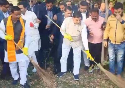 मध्य प्रदेश के मुख्यमंत्री मोहन यादव ने उज्जैन के अटल अनुभूति उद्यान आयोजित स्वच्छता श्रमदान कार्यक्रम में सहभागिता करते हुए झाड़ू लगाई