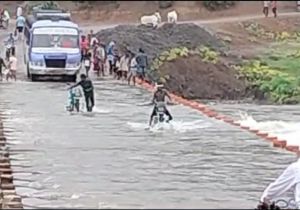 दूर घटना का इंतजार जान खतरे में डालकर पुलिया पार कर रहे बाइक चालक और यात्री बसें, शासन प्रशासन बेखबर
