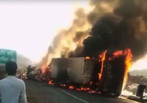 गणपति घाट पर तीन वाहन टकराए, आग लगी; दो लोग जिंदा जले