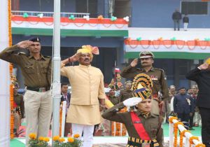 गणतंत्र दिवस पर इंदौर के नेहरू स्टेडियम में जल संसाधन मंत्री तुलसी सिलावट ने किया ध्वजारोहण