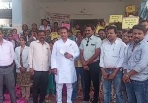 अपनी विभिन्न मांगों को लेकर संविदा स्वास्थ्य कर्मचारी हड़ताल पर