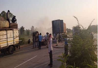 NH-30 पर चलते ट्रक में लगी भीषण आग, आग से ट्रक जलकर खाक