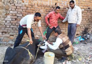 निराश्रित नंदी बैल पर किया गया कुल्हाड़ी जैसी धारदार हथियार से हमला