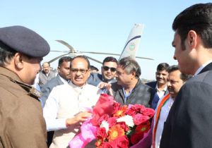 मुख्यमंत्री चौहान का हेलीपेड पर हुआ आत्मीय स्वागत