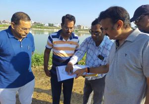 निर्माणाधीन रतहरा तालाब सौंदर्यीकरण का विधायक राजेन्द्र शुक्ल ने किया निरीक्षण