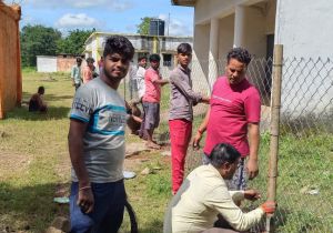 ग्राम खरगहना में माँ काली समिति के सदस्यों ने दुर्गा मंदिर मैं बाउंड्री वॉल किया